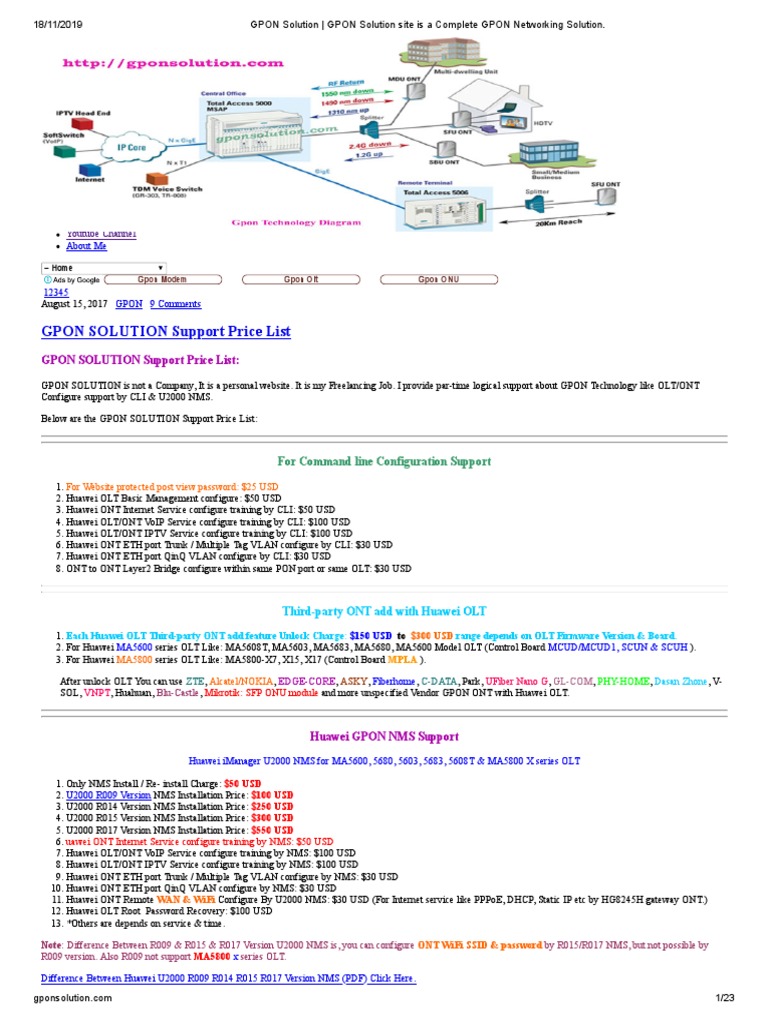 Nah pada kesempatan kali ini saya akan membagikan user super untuk ont atau modem hg8245h5 Display gpon dba ⇒ display the ont password renewal. Run the interface gpon command to enter the gpon mode. May 03, 2018 · ⇒ display user password and the ftp configuration. Figure 1 shows the process of configuring gpon ont eg8145v5.